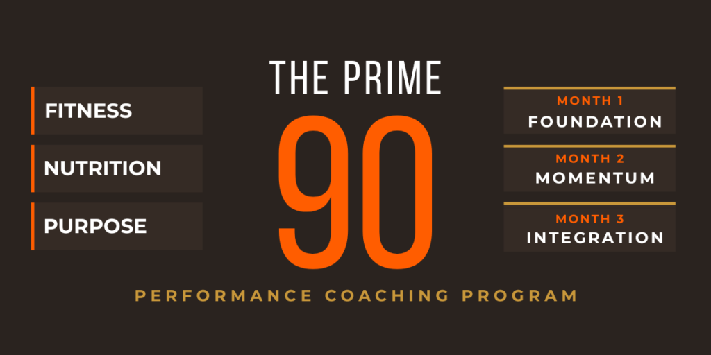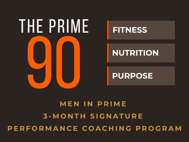 The Prime 90 is a complete 90-day 1-on-1 coaching program built around three integrated pillars — physical fitness, nutrition, and life design. It is not a course, a group program, or a generic plan. It is a genuine coaching relationship designed specifically for driven men in their 40s and 50s who are ready to rebuild their physical foundation and reclaim their edge.